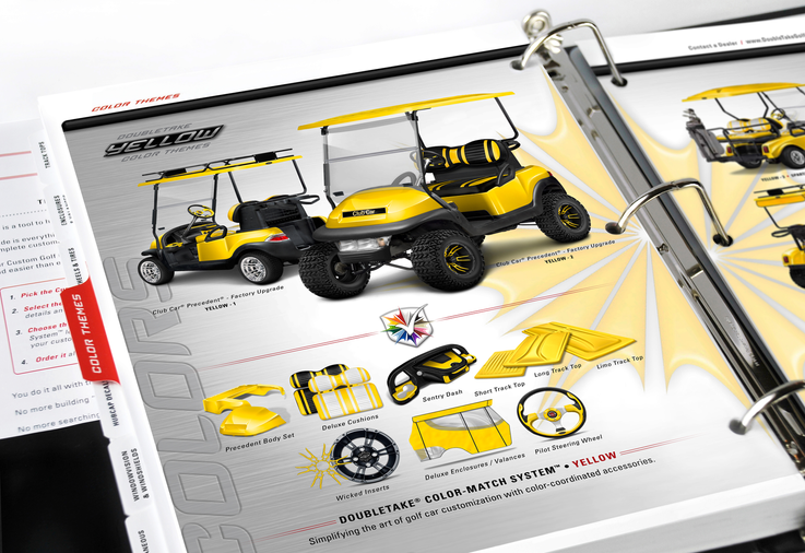 To widen the niche of DoubleTake® color-coordinated golf car accessories, a Color-Match System™ was created. As more and more colors were added, this category needed a uspotlight of its own.